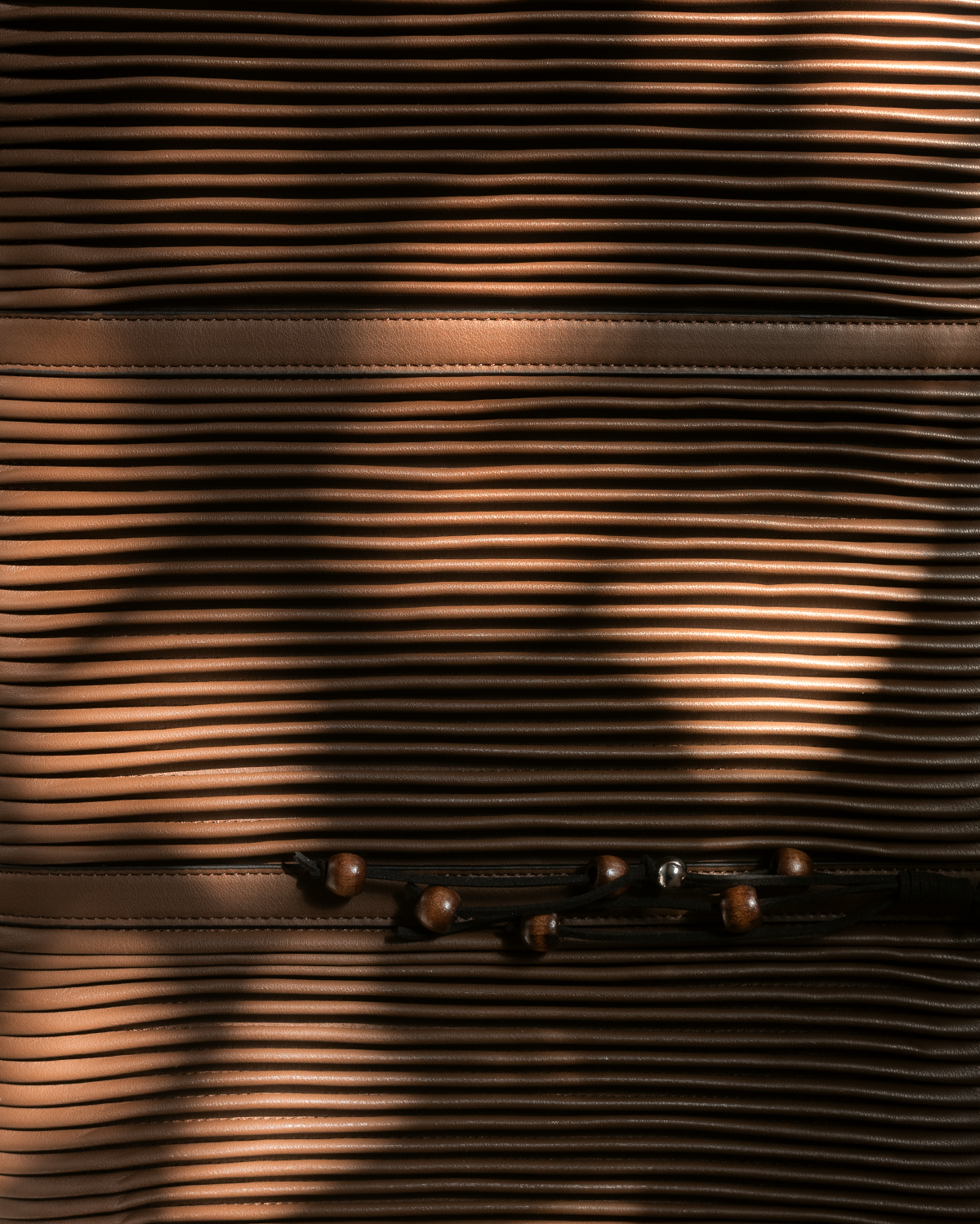 Inspired by the bloom process in coffee brewing, this series features a new texture through fabric manipulation, hand-folded pleat by pleat. After months of prototyping and adjusting, we are proud to present the final form: A visual balance of structure and softness of the material.