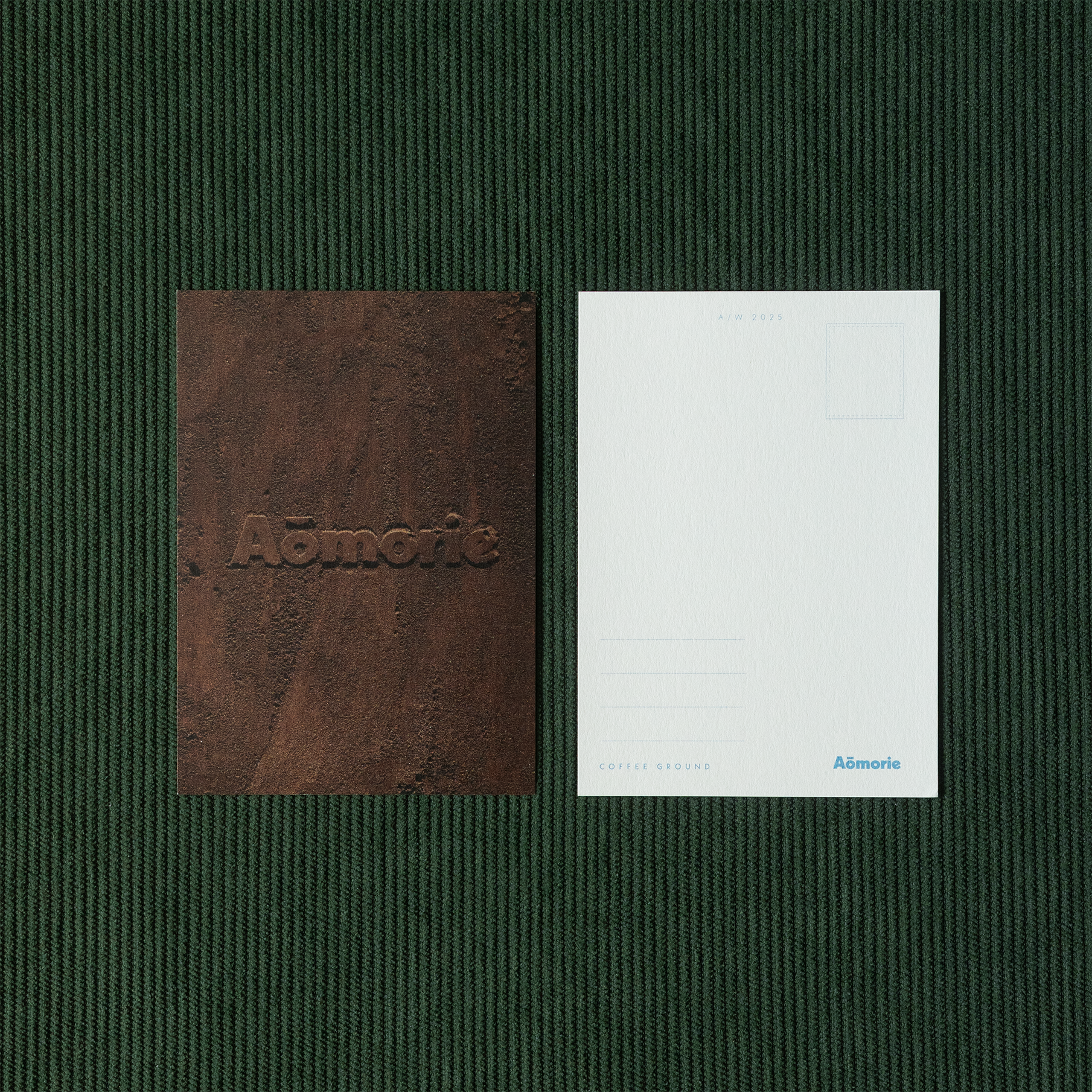 The photograph in Coffee Ground Aomorie Postcard is made with soft coffee powder to bring out the details of our logo. The Aomorie stamp is 3D printed locally.